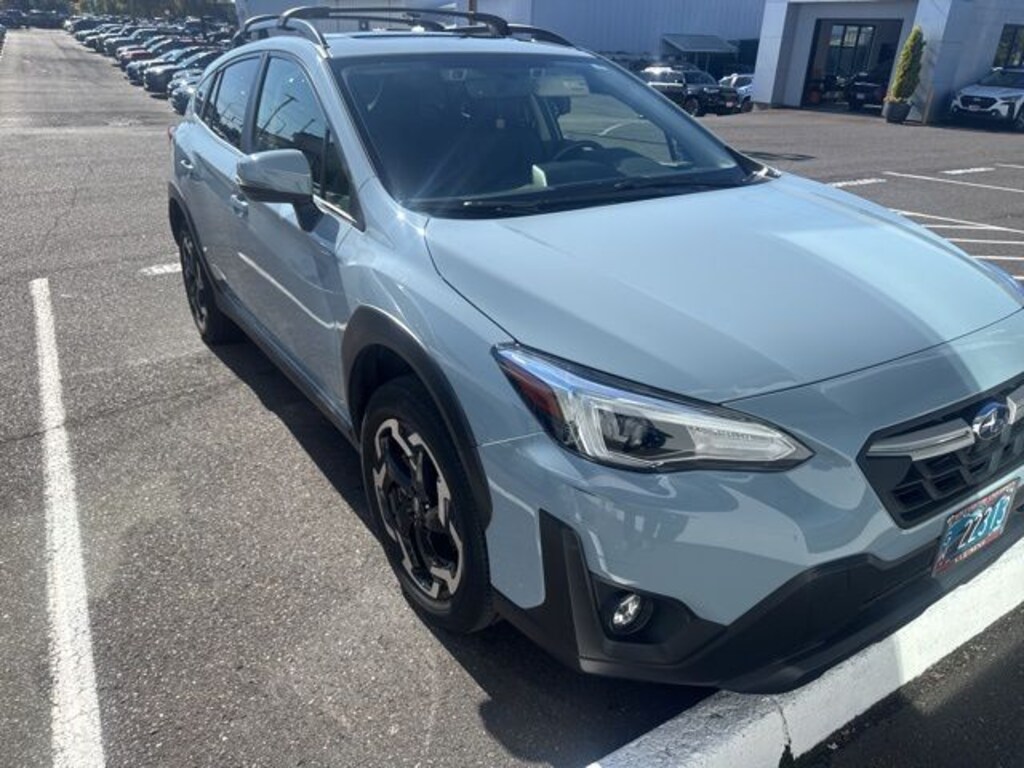 This 2021 Cool Gray Khaki Subaru Crosstrek Limited AWD is well equipped and includes these features and benefits: Moonroof Package 2 (harman/kardon Speaker System, Power Moonroof, Radio: Subaru STARLINK 8.0" Multimedia Nav System, and Subaru STARLINK Smartphone Integration), Popular Package #3 (Auto-Dimming Exterior Mirror w/Approach Light, Auto-Dimming Mirror w/Compass & HomeLink, Map & Dome Lights LED Upgrade, and Rear Bumper Cover), 3.70 Axle Ratio, 4-Wheel Disc Brakes, 6 Speakers, ABS brakes, Aero Crossbar Set, Air Conditioning, All-Weather Floor Liners, Alloy wheels, AM/FM radio: SiriusXM, Anti-whiplash front head restraints, Auto High-beam Headlights, Automatic temperature control, Brake assist, Bumpers: body-color, CD player, Driver door bin, Driver vanity mirror, Dual front impact airbags, Dual front side impact airbags, Electronic Stability Control, Emergency communication system: STARLINK Safety and Security (Subscription Required), Exterior Parking Camera Rear, Four wheel independent suspension, Front anti-roll bar, Front Bucket Seats, Front Center Armrest, Front fog lights, Front reading lights, Fully automatic headlights, Heated door mirrors, Heated Front Bucket Seats, Heated front seats, Illuminated entry, Knee airbag, Leather-Trimmed Upholstery, Low tire pressure warning, Occupant sensing airbag, Outside temperature display, Overhead airbag, Overhead console, Panic alarm, Passenger door bin, Passenger vanity mirror, Power door mirrors, Power driver seat, Power steering, Power windows, Radio data system, Radio: Subaru STARLINK 8.0" Multimedia Plus System, Rear anti-roll bar, Rear seat center armrest, Rear window defroster, Rear window wiper, Remote keyless entry, Security system, Speed control, Speed-sensing steering, Split folding rear seat, Spoiler, STARLINK/Apple CarPlay/Android Auto, Steering wheel mounted audio controls, Tachometer, Telescoping steering wheel, Tilt steering wheel, Traction control, Trip computer, Turn signal indicator mirrors, Variably intermittent wipers, and Wheels: 18" Alloy Machine Finish.
