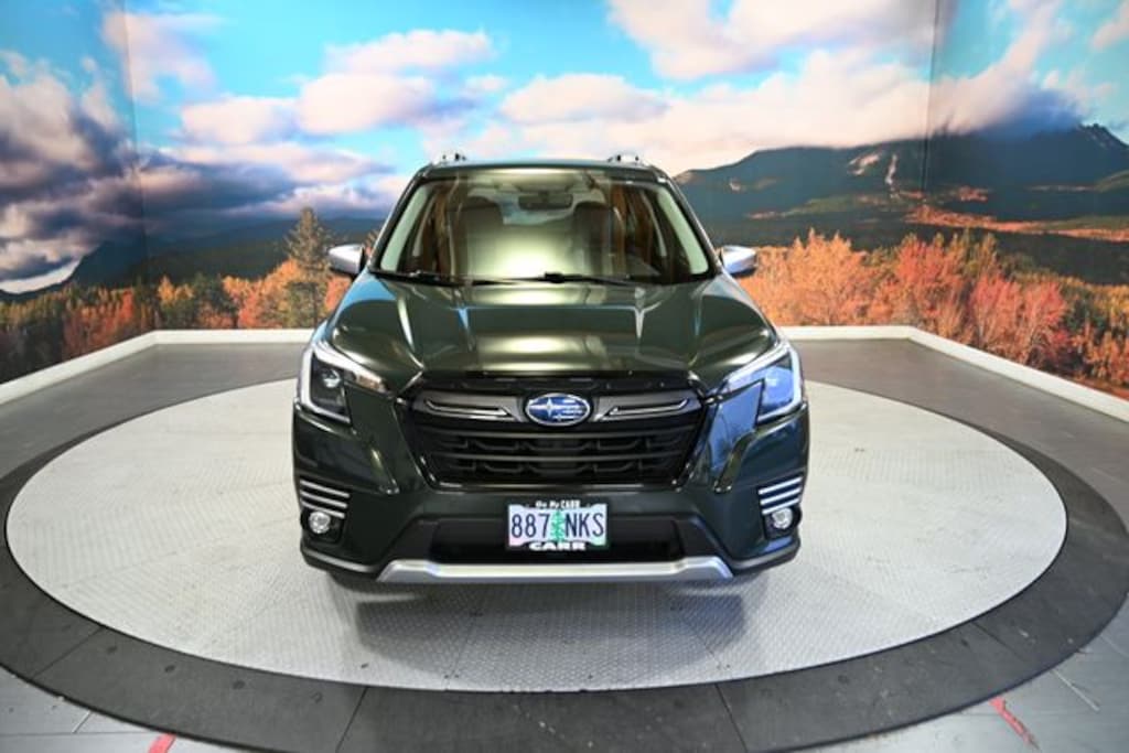 This 2022 Cascade Green Silica Subaru Forester Touring AWD is well equipped and includes these features and benefits: Popular Package #2 (All-Weather Floor Liners, Auto-Dimming Exterior Mirror w/Approach Lighting, Auto-Dimming Mirror w/Compass & HomeLink, Cargo Net, and Rear Bumper Cover), Standard Model, Carr Care Advantage Certified, 3.70 Axle Ratio, 4-Wheel Disc Brakes, 9 Speakers, ABS brakes, Aero Crossbar Set, Air Conditioning, Alloy wheels, AM/FM radio: SiriusXM, Anti-whiplash front head restraints, Auto High-beam Headlights, Automatic temperature control, Brake assist, Bumpers: body-color, CD player, Driver door bin, Driver vanity mirror, Dual front impact airbags, Dual front side impact airbags, Electronic Stability Control, Emergency communication system: STARLINK Safety and Security (Subscription Required), Exterior Parking Camera Rear, Four wheel independent suspension, Front anti-roll bar, Front Bucket Seats, Front Center Armrest, Front dual zone A/C, Front fog lights, Front reading lights, Fully automatic headlights, harman/kardon 576W Amp & Speaker System, harman/kardon® Speakers, Heated door mirrors, Heated Front Bucket Seats, Heated front seats, Heated rear seats, Heated steering wheel, HVAC memory, Illuminated entry, Knee airbag, Leather Shift Knob, Low tire pressure warning, Memory seat, Navigation System, Occupant sensing airbag, Outside temperature display, Overhead airbag, Overhead console, Panic alarm, Passenger door bin, Passenger vanity mirror, Perforated Leather-Trimmed Upholstery, Power door mirrors, Power driver seat, Power Liftgate, Power moonroof: Panoramic, Power passenger seat, Power steering, Power windows, Premium audio system: harman/kardon, Radio data system, Radio: Subaru Starlink 8.0" Multimedia Nav System, Rear anti-roll bar, Rear seat center armrest, Rear Seatback Protector, Rear window defroster, Rear window wiper, Remote keyless entry, Roof rack: rails only, Security system, Speed control, Speed-sensing steering, Split folding rear seat, Spoiler, STARLINK/Apple CarPlay/Android Auto, Steering wheel mounted audio controls, Tachometer, Telescoping steering wheel, Tilt steering wheel, Traction control, Trip computer, Turn signal indicator mirrors, Variably intermittent wipers, and Wheels: 18" x 7.0J Dark Gray Machine Finish Alloy. No CARR payments for 90 days, Sign and Drive sales event!, CARR Cares Advantage up to $3100 in ownership savings, Great value AWD Subaru.