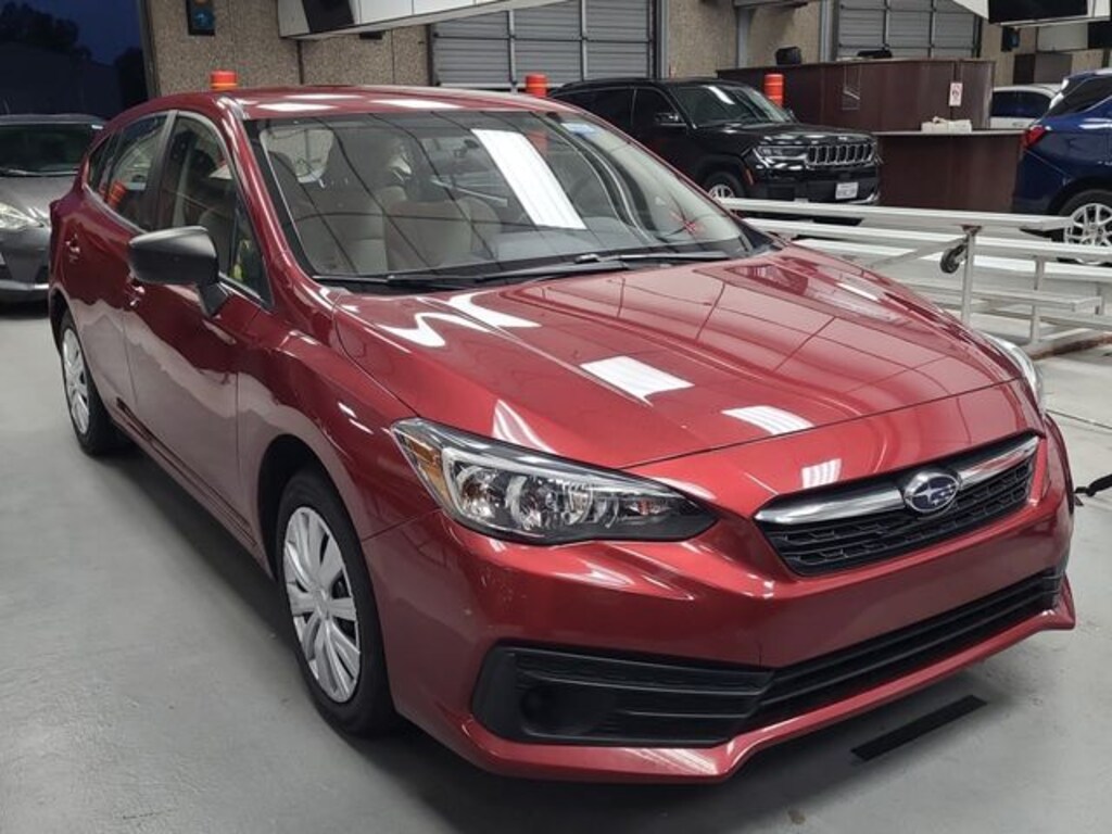 This 2022 Crimson Red Pearl Subaru Impreza AWD is well equipped and includes these features and benefits: Standard Model, 4 Speakers, 4-Wheel Disc Brakes, ABS brakes, Air Conditioning, AM/FM radio, Anti-whiplash front head restraints, Brake assist, Bumpers: body-color, Cloth Upholstery, Driver door bin, Driver vanity mirror, Dual front impact airbags, Dual front side impact airbags, Electronic Stability Control, Exterior Parking Camera Rear, Four wheel independent suspension, Front anti-roll bar, Front Bucket Seats, Front Center Armrest, Front reading lights, Illuminated entry, Knee airbag, Low tire pressure warning, Occupant sensing airbag, Outside temperature display, Overhead airbag, Overhead console, Panic alarm, Passenger door bin, Passenger vanity mirror, Power door mirrors, Power steering, Power windows, Radio data system, Radio: Subaru STARLINK 6.5" Multimedia System, Rear window defroster, Rear window wiper, Remote keyless entry, Security system, Speed control, Speed-sensing steering, Split folding rear seat, Spoiler, STARLINK/Apple CarPlay/Android Auto, Steering wheel mounted audio controls, Tachometer, Telescoping steering wheel, Tilt steering wheel, Traction control, Trip computer, Variably intermittent wipers, and Wheels: 16" x 6.5" Black Finish J Steel.