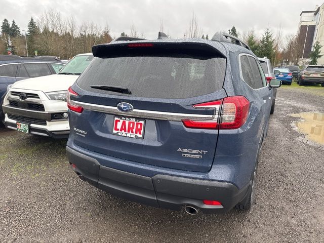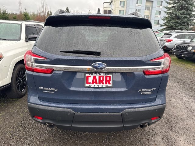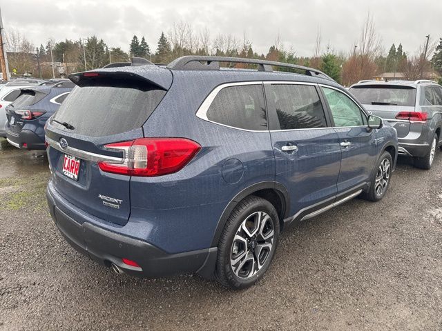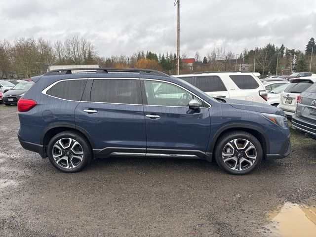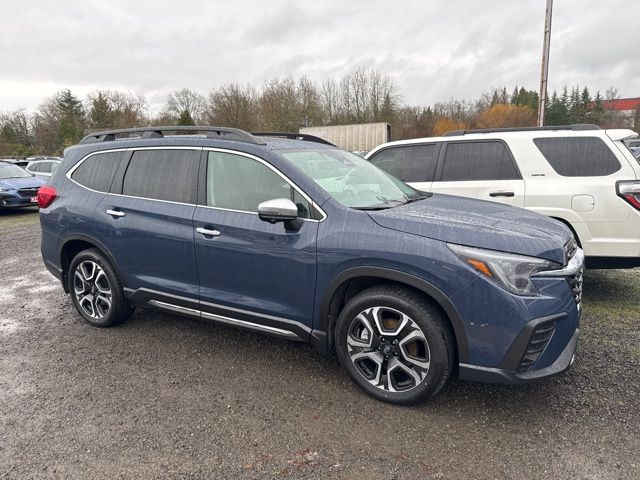 This 2023 Cosmic Blue Pearl Subaru Ascent Touring AWD is well equipped and includes these features and benefits: Standard Model, 14 Speakers, 3rd row seats: bench, 4-Wheel Disc Brakes, ABS brakes, Air Conditioning, All-Weather Floor Liners, Alloy wheels, AM/FM radio: SiriusXM, Auto High-beam Headlights, Auto-Dimming Exterior Mirror w/Approach Light, Auto-dimming Rear-View mirror, Automatic temperature control, Axle Ratio: 4.44, Brake assist, Bumpers: body-color, Cargo Net, Compass, Delay-off headlights, Driver door bin, Driver vanity mirror, Dual front impact airbags, Dual front side impact airbags, Electronic Stability Control, Emergency communication system: STARLINK Safety and Security (Subscription Required), Four wheel independent suspension, Front anti-roll bar, Front Bucket Seats, Front Center Armrest, Front dual zone A/C, Front fog lights, Front reading lights, Fully automatic headlights, Garage door transmitter: HomeLink, harman/kardon® Speakers, Heated & Ventilated Front Bucket Seats, Heated door mirrors, Heated front seats, Heated rear seats, Heated steering wheel, HVAC memory, Illuminated entry, Knee airbag, Leather Shift Knob, Leather steering wheel, Low tire pressure warning, Map & Reading Lights LED Upgrade - 6 Bulb Kit, Memory seat, Navigation System, Occupant sensing airbag, Outside temperature display, Overhead airbag, Overhead console, Panic alarm, Passenger door bin, Passenger vanity mirror, Perforated Nappa Leather-Trimmed Upholstery, Power door mirrors, Power driver seat, Power Liftgate, Power moonroof, Power passenger seat, Power steering, Power windows, Radio data system, Radio: Subaru STARLINK 11.6" Multimedia Nav System, Rain sensing wipers, Rear air conditioning, Rear anti-roll bar, Rear reading lights, Rear window defroster, Rear window wiper, Reclining 3rd row seat, Remote keyless entry, Security system, Speed control, Speed-sensing steering, Splash Guards, Split folding rear seat, Spoiler, STARLINK/Apple CarPlay/Android Auto, Steering wheel mounted audio controls, Tachometer, Telescoping steering wheel, Tilt steering wheel, Traction control, Trip computer, Turn signal indicator mirrors, Variably intermittent wipers, Ventilated front seats, and Wheels: 20" x 7.5 J Dk Gray Alloy w/Machine Finish.