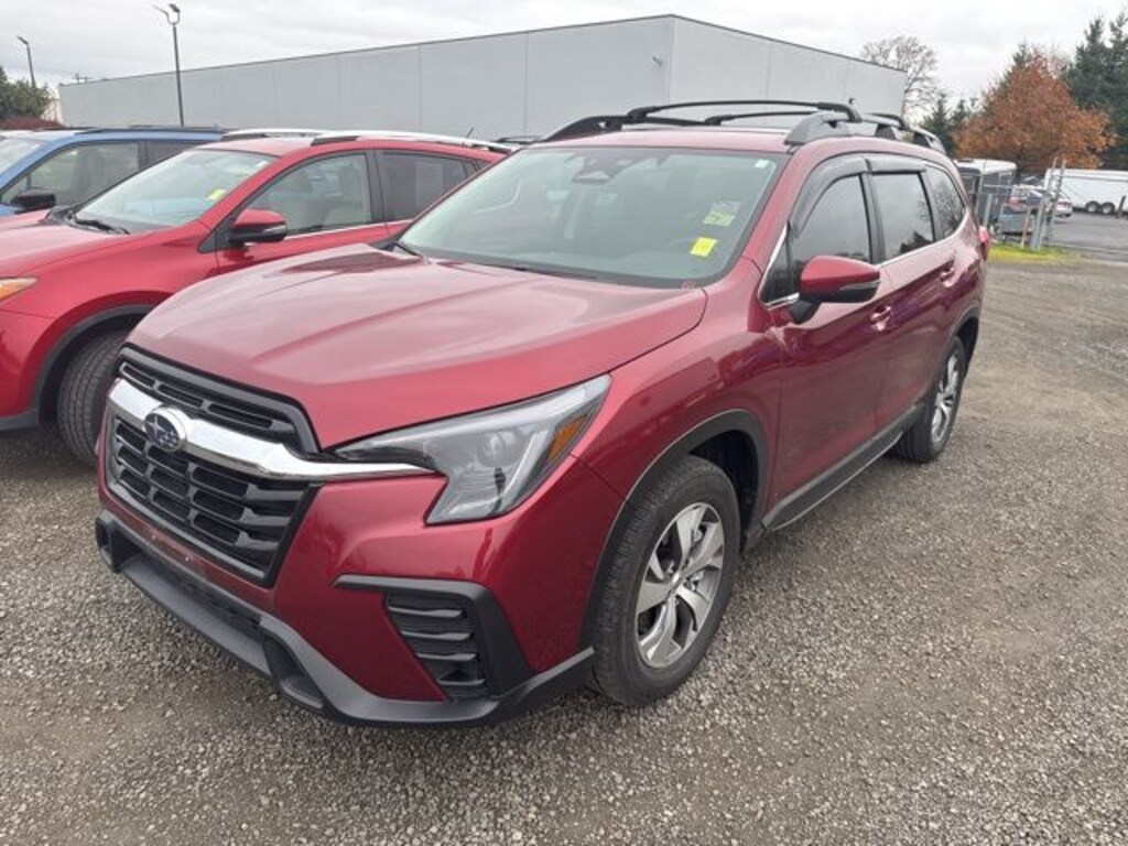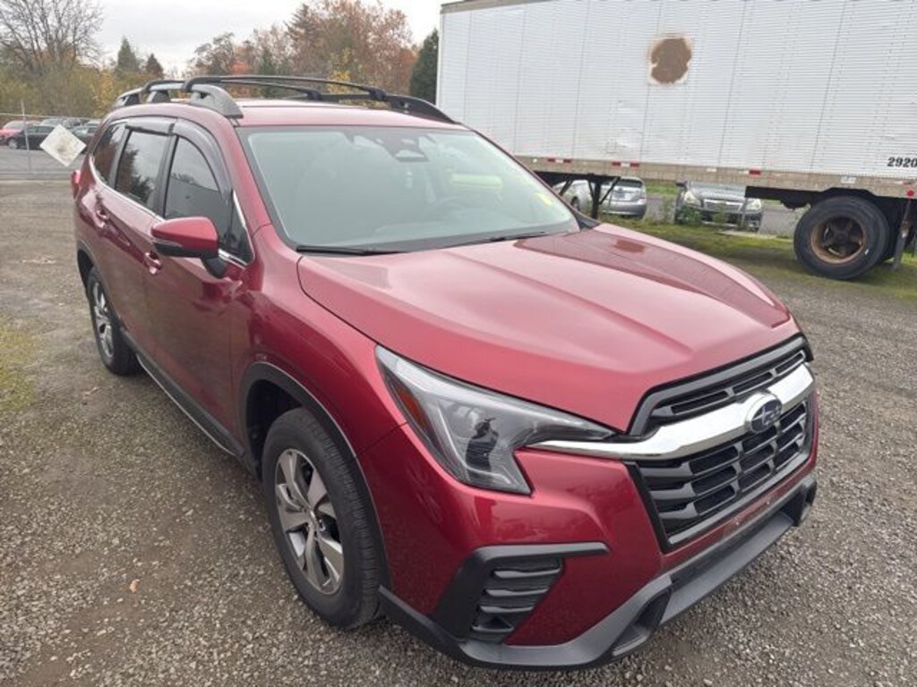This 2023 Crimson Red Pearl Subaru Ascent Premium AWD is well equipped and includes these features and benefits: Convenience Package (Auto-Dimming Rear View Compass Mirror w/HomeLink, Keyless Access w/Push-Button Start, Power Rear Gate w/Automatic Close & Height Memory, and Reverse Automatic Braking (RAB) System), 3rd Row Bench Rear Seatback Protector, 3rd row seats: bench, 4-Wheel Disc Brakes, 6 Speakers, ABS brakes, Aero Crossbar Set, Air Conditioning, All-Weather Floor Liners, Alloy wheels, AM/FM radio: SiriusXM, Auto High-beam Headlights, Auto-Dimming Exterior Mirror w/Approach Light, Automatic temperature control, Axle Ratio: 4.44, Brake assist, Bumpers: body-color, Cargo Tray, Delay-off headlights, Driver door bin, Driver vanity mirror, Dual front impact airbags, Dual front side impact airbags, Electronic Stability Control, Emergency communication system: STARLINK Safety and Security (Subscription Required), Exterior Parking Camera Rear, Four wheel independent suspension, Front anti-roll bar, Front Bucket Seats, Front Center Armrest, Front dual zone A/C, Front reading lights, Fully automatic headlights, Heated door mirrors, Heated Front Bucket Seats, Heated front seats, Illuminated entry, Knee airbag, Leather Shift Knob, Leather steering wheel, Low tire pressure warning, Map & Reading Lights LED Upgrade - 6 Bulb Kit, Occupant sensing airbag, Outside temperature display, Overhead airbag, Overhead console, Panic alarm, Passenger door bin, Passenger vanity mirror, Power door mirrors, Power driver seat, Power steering, Power windows, Radio data system, Radio: Subaru STARLINK 11.6" Multimedia Plus System, Rear air conditioning, Rear anti-roll bar, Rear Bumper Cover, Rear reading lights, Rear window defroster, Rear window wiper, Reclining 3rd row seat, Remote keyless entry, Security system, Speed control, Speed-sensing steering, Spill Resistant Coated Cloth Upholstery, Split folding rear seat, Spoiler, STARLINK/Apple CarPlay/Android Auto, Steering wheel mounted audio controls, Tachometer, Telescoping steering wheel, Tilt steering wheel, Traction control, Trip computer, Turn signal indicator mirrors, Variably intermittent wipers, and Wheels: 18" x 7.5 J Gray Alloy w/Machine Finish.