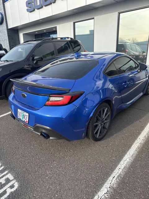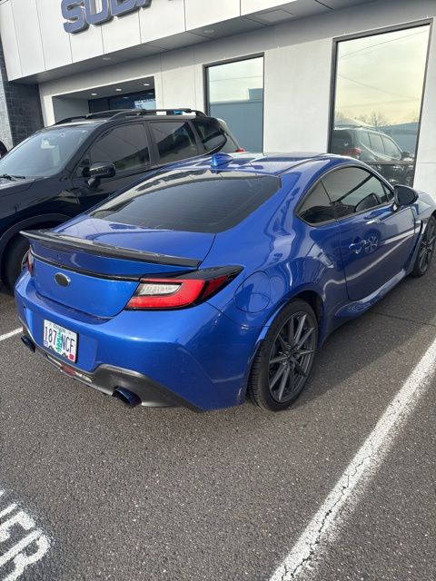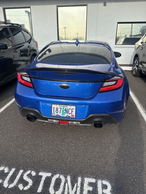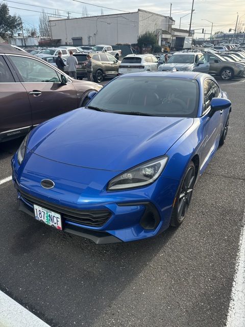 This 2023 WR Blue Pearl Subaru BRZ Limited RWD is well equipped and includes these features and benefits: Standard Model, 4-Wheel Disc Brakes, 8 Speakers, ABS brakes, Air Conditioning, Alloy wheels, AM/FM radio: SiriusXM, Anti-whiplash front head restraints, Automatic temperature control, Brake assist, Bumpers: body-color, Cargo Tray, Delay-off headlights, Driver door bin, Driver vanity mirror, Dual front impact airbags, Dual front side impact airbags, Electronic Stability Control, Emergency communication system: STARLINK Safety and Security (Subscription Required), Exterior Parking Camera Rear, Four wheel independent suspension, Front anti-roll bar, Front Bucket Seats, Front dual zone A/C, Front fog lights, Front reading lights, Fully automatic headlights, Heated door mirrors, Heated front seats, Illuminated entry, Knee airbag, Leather Shift Knob, Leather steering wheel, Low tire pressure warning, Navigation System, Occupant sensing airbag, Outside temperature display, Overhead airbag, Overhead console, Panic alarm, Passenger door bin, Passenger vanity mirror, Performance Design Front Heated Bucket Seats, Power door mirrors, Power steering, Power windows, Radio data system, Radio: Subaru STARLINK 8.0" Multimedia Plus System, Rear anti-roll bar, Rear Parking Sensors, Rear window defroster, Remote keyless entry, Security system, Speed control, Speed-Sensitive Wipers, Spoiler, STARLINK/Apple CarPlay/Android Auto, Steering wheel mounted audio controls, STI Short Throw Shifter - 6MT, Tachometer, Telescoping steering wheel, Tilt steering wheel, Traction control, Trip computer, Ultrasuede Upholstery w/Leather Bolsters, Variably intermittent wipers, Voltmeter, and Wheels: 18" x 7.5 J Matte Dark Gray Finish Alloy.