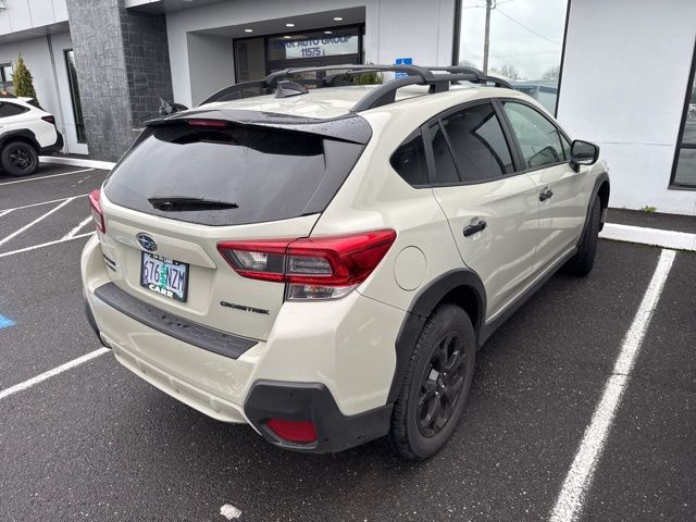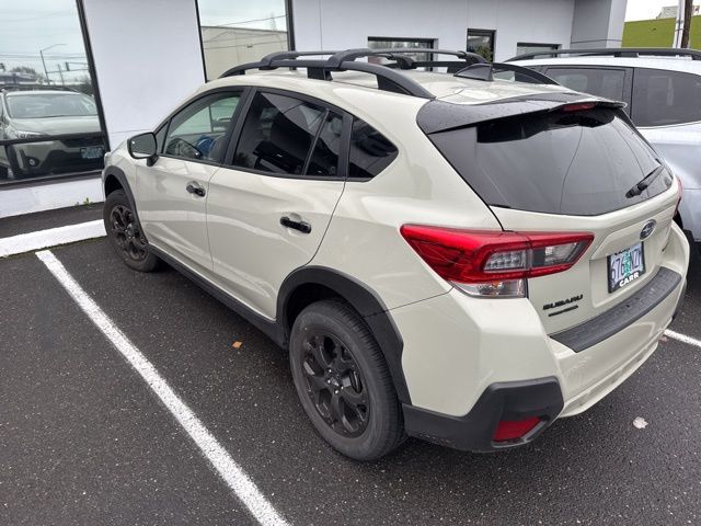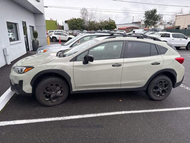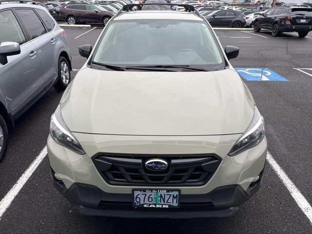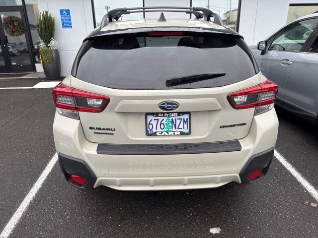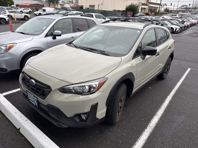 This 2023 Desert Khaki Subaru Crosstrek Premium AWD is well equipped and includes these features and benefits: 3.90 Axle Ratio, 4-Wheel Disc Brakes, 6 Speakers, ABS brakes, Air Conditioning, Alloy wheels, AM/FM radio: SiriusXM, Anti-whiplash front head restraints, Automatic temperature control, Brake assist, Bumpers: body-color, CD player, Cloth Upholstery, Driver door bin, Driver vanity mirror, Dual front impact airbags, Dual front side impact airbags, Electronic Stability Control, Emergency communication system: STARLINK Safety and Security (Subscription Required), Exterior Parking Camera Rear, Four wheel independent suspension, Front anti-roll bar, Front Bucket Seats, Front Center Armrest, Front fog lights, Front reading lights, Fully automatic headlights, Heated door mirrors, Heated Front Bucket Seats, Heated front seats, Illuminated entry, Knee airbag, Leather Shift Knob, Low tire pressure warning, Occupant sensing airbag, Outside temperature display, Overhead airbag, Overhead console, Panic alarm, Passenger door bin, Passenger vanity mirror, Power door mirrors, Power steering, Power windows, Radio data system, Radio: Subaru STARLINK 6.5" Multimedia Plus System, Rear anti-roll bar, Rear window defroster, Rear window wiper, Remote keyless entry, Security system, Speed control, Speed-sensing steering, Split folding rear seat, Spoiler, STARLINK/Apple CarPlay/Android Auto, Steering wheel mounted audio controls, Tachometer, Telescoping steering wheel, Tilt steering wheel, Traction control, Trip computer, Variably intermittent wipers, and Wheels: 17" x 7.0J Alum Alloy Blk w/Machine Finish.
