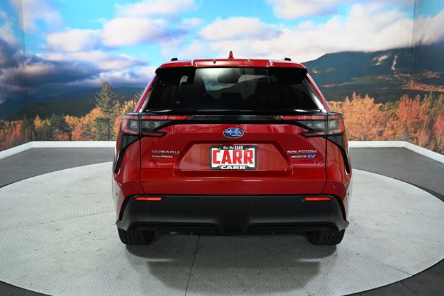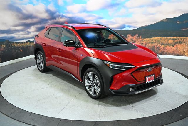 This 2023 Elemental Red Pearl Subaru Solterra Limited AWD is well equipped and includes these features and benefits: Standard Model, Navigation system: Cloud Navigation System (Subscription required), 11 Speakers, 13.8 Axle Ratio, 4-Wheel Disc Brakes, ABS brakes, Active Cruise Control, Air Conditioning, Alloy wheels, AM/FM radio: SiriusXM, Auto High-beam Headlights, Auto-dimming Rear-View mirror, Automatic temperature control, Brake assist, Bumpers: body-color, Cargo Tray, Driver door bin, Driver vanity mirror, Dual front impact airbags, Dual front side impact airbags, Electronic Stability Control, Emergency communication system: Subaru Solterra Connect - Safety Connect (1 year trial included), Four wheel independent suspension, Front anti-roll bar, Front Bucket Seats, Front Center Armrest, Front dual zone A/C, Front fog lights, Front reading lights, Fully automatic headlights, Garage door transmitter: HomeLink, harman/kardon® Speakers, Heated door mirrors, Heated Front Bucket Seats, Heated front seats, Heated rear seats, Heated steering wheel, Illuminated entry, Knee airbag, Leather steering wheel, Low tire pressure warning, Memory seat, Occupant sensing airbag, Outside temperature display, Overhead airbag, Overhead console, Panic alarm, Passenger door bin, Passenger vanity mirror, Power door mirrors, Power driver seat, Power Liftgate, Power steering, Power windows, Radio data system, Radio: Subaru Solterra Connect 12.3" Multimedia System, Rain sensing wipers, Rear anti-roll bar, Rear reading lights, Rear seat center armrest, Rear window defroster, Remote keyless entry, Security system, Speed control, Speed-sensing steering, Split folding rear seat, Spoiler, StarTex Upholstery, Steering wheel mounted audio controls, Telescoping steering wheel, Tilt steering wheel, Traction control, Trip computer, Turn signal indicator mirrors, Variably intermittent wipers, and Wheels: 20" x 7.5" J Aluminum-Alloy Gray Finish. Lifetime powertrain warranty, No CARR payments for 4 months, Sign and Drive sales event!, CARR Cares Advantage up to $3100 in ownership savings, Ask us about our lifetime powertrain warranty!, Navigation system: Cloud Navigation System (Subscription required).