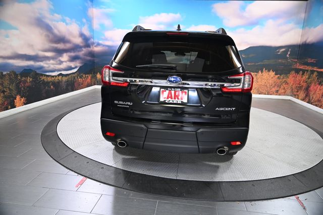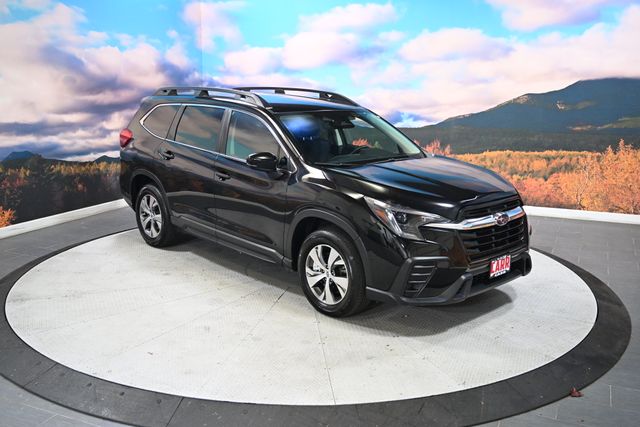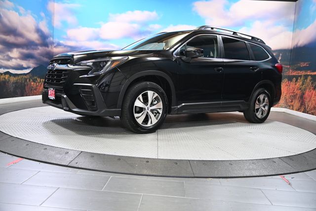 This 2024 Crystal Black Silica Subaru Ascent Premium AWD is well equipped and includes these features and benefits: Convenience Package (Auto-Dimming Rear View Compass Mirror w/HomeLink, Keyless Access w/Push-Button Start, Power Rear Gate w/Automatic Close & Height Memory, and Reverse Automatic Braking (RAB) System), 3rd row seats: bench, 4-Wheel Disc Brakes, 6 Speakers, ABS brakes, Air Conditioning, Alloy wheels, AM/FM radio: SiriusXM, Auto High-beam Headlights, Automatic temperature control, Axle Ratio: 4.44, Brake assist, Bumpers: body-color, Delay-off headlights, Driver door bin, Driver vanity mirror, Dual front impact airbags, Dual front side impact airbags, Electronic Stability Control, Emergency communication system: STARLINK Safety and Security (Subscription Required), Exterior Parking Camera Rear, Four wheel independent suspension, Front anti-roll bar, Front Bucket Seats, Front Center Armrest, Front dual zone A/C, Front reading lights, Fully automatic headlights, Heated door mirrors, Heated Front Bucket Seats, Heated front seats, Illuminated entry, Knee airbag, Leather Shift Knob, Leather steering wheel, Low tire pressure warning, Occupant sensing airbag, Outside temperature display, Overhead airbag, Overhead console, Panic alarm, Passenger door bin, Passenger vanity mirror, Power door mirrors, Power driver seat, Power steering, Power windows, Radio data system, Radio: Subaru STARLINK 11.6" Multimedia Plus System, Rear air conditioning, Rear anti-roll bar, Rear reading lights, Rear window defroster, Rear window wiper, Reclining 3rd row seat, Remote keyless entry, Security system, Speed control, Speed-sensing steering, Spill Resistant Coated Cloth Upholstery, Split folding rear seat, Spoiler, STARLINK/Apple CarPlay/Android Auto, Steering wheel mounted audio controls, Tachometer, Telescoping steering wheel, Tilt steering wheel, Traction control, Trip computer, Turn signal indicator mirrors, Variably intermittent wipers, and Wheels: 18" x 7.5 J Gray Alloy w/Machine Finish.