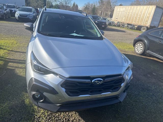 This 2024 Ice Silver Metallic Subaru Crosstrek Limited AWD is well equipped and includes these features and benefits: Crosstrek Mirror Package (Auto-Dimming Exterior Mirror w/Approach Light and Auto-Dimming Mirror w/Compass & HomeLink), Standard Model, 3.70 Axle Ratio, 4-Wheel Disc Brakes, 6 Speakers, ABS brakes, Air Conditioning, All-Weather Floor Liners (DISC), Alloy wheels, AM/FM radio: SiriusXM, Anti-whiplash front head restraints, Auto High-beam Headlights, Automatic temperature control, Brake assist, Bumpers: body-color, Driver door bin, Driver vanity mirror, Dual front impact airbags, Dual front side impact airbags, Electronic Stability Control, Emergency communication system: STARLINK Safety and Security (Subscription Required), Exterior Parking Camera Rear, Four wheel independent suspension, Front anti-roll bar, Front Bucket Seats, Front Center Armrest, Front dual zone A/C, Front fog lights, Front reading lights, Fully automatic headlights, Heated door mirrors, Heated Front Bucket Seats, Heated front seats, Illuminated entry, Knee airbag, Leather Shift Knob, Leather-Trimmed Upholstery, Low tire pressure warning, Occupant sensing airbag, Outside temperature display, Overhead airbag, Overhead console, Panic alarm, Passenger door bin, Passenger vanity mirror, Power door mirrors, Power driver seat, Power steering, Power windows, Radio data system, Radio: Subaru STARLINK 11.6" Multimedia Plus Sys, Rear anti-roll bar, Rear Bumper Cover, Rear seat center armrest, Rear window defroster, Rear window wiper, Remote keyless entry, Security system, Speed control, Speed-sensing steering, Split folding rear seat, Spoiler, STARLINK/Apple CarPlay/Android Auto, Steering wheel mounted audio controls, Tachometer, Telescoping steering wheel, Tilt steering wheel, Traction control, Trip computer, Turn signal indicator mirrors, Variably intermittent wipers, and Wheels: 18" x 7.0J Dark Gray Aluminum Alloy.