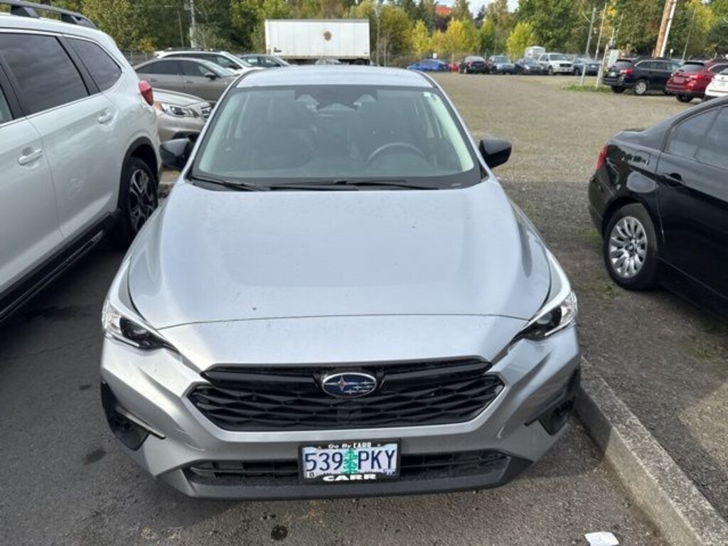 This 2024 Ice Silver Metallic Subaru Impreza AWD is well equipped and includes these features and benefits: 4 Speakers, 4-Wheel Disc Brakes, ABS brakes, Air Conditioning, AM/FM radio: SiriusXM, Anti-whiplash front head restraints, Auto High-beam Headlights, Automatic temperature control, Brake assist, Bumpers: body-color, Cloth Upholstery, Driver door bin, Driver vanity mirror, Dual front impact airbags, Dual front side impact airbags, Electronic Stability Control, Exterior Parking Camera Rear, Four wheel independent suspension, Front anti-roll bar, Front Bucket Seats, Front Center Armrest, Front dual zone A/C, Front reading lights, Fully automatic headlights, Illuminated entry, Knee airbag, Low tire pressure warning, Occupant sensing airbag, Outside temperature display, Overhead airbag, Overhead console, Panic alarm, Passenger door bin, Passenger vanity mirror, Power door mirrors, Power steering, Power windows, Radio data system, Radio: Subaru STARLINK Dual 7.0" Multimedia System, Rear window defroster, Rear window wiper, Remote keyless entry, Security system, Speed control, Speed-sensing steering, Split folding rear seat, Spoiler, STARLINK/Apple CarPlay/Android Auto, Steering wheel mounted audio controls, Tachometer, Telescoping steering wheel, Tilt steering wheel, Traction control, Trip computer, Variably intermittent wipers, and Wheels: 16" x 6.0" Full Cap 1/2 J Steel.