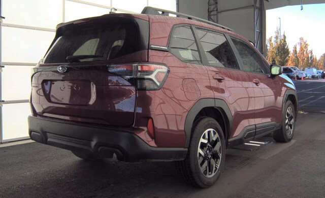 This 2025 Crimson Red Pearl Subaru Forester Premium AWD is well equipped and includes these features and benefits: Power Rear Gate & Blind Spot Detection w/RCTA (Automatic Emergency Steering, Blind-Spot Detection (BSD)/RCTA System, and Power Rear Gate), 4-Wheel Disc Brakes, 6 Speakers, ABS brakes, Air Conditioning, Alloy wheels, AM/FM radio: SiriusXM with 360L, Anti-whiplash front head restraints, Auto High-beam Headlights, Automatic temperature control, Brake assist, Bumpers: body-color, Driver door bin, Driver vanity mirror, Dual front impact airbags, Dual front side impact airbags, Electronic Stability Control, Emergency communication system: MySubaru Safety (3-year free trial), Exterior Parking Camera Rear, Four wheel independent suspension, Front anti-roll bar, Front Bucket Seats, Front Center Armrest, Front dual zone A/C, Front fog lights, Front reading lights, Fully automatic headlights, Heated door mirrors, Heated Front Bucket Seats, Heated front seats, Illuminated entry, Knee airbag, Leather steering wheel, Low tire pressure warning, Occupant sensing airbag, Outside temperature display, Overhead airbag, Overhead console, Panic alarm, Passenger door bin, Passenger vanity mirror, Power door mirrors, Power driver seat, Power moonroof: Panoramic, Power steering, Power windows, Premium Textured Cloth Upholstery, Radio data system, Radio: Subaru 11.6" Multimedia Plus System, Rear anti-roll bar, Rear seat center armrest, Rear window defroster, Rear window wiper, Remote keyless entry, Security system, Speed control, Speed-sensing steering, Split folding rear seat, Spoiler, Steering wheel mounted audio controls, Tachometer, Telescoping steering wheel, Tilt steering wheel, Traction control, Trip computer, Variably intermittent wipers, and Wheels: 17" x 7.0 J Dark Metallic Aluminum-Alloy. Lifetime powertrain warranty, No CARR payments for 4 months, Sign and Drive sales event!, CARR Cares Advantage up to $3100 in ownership savings, Ask us about our lifetime powertrain warranty!.