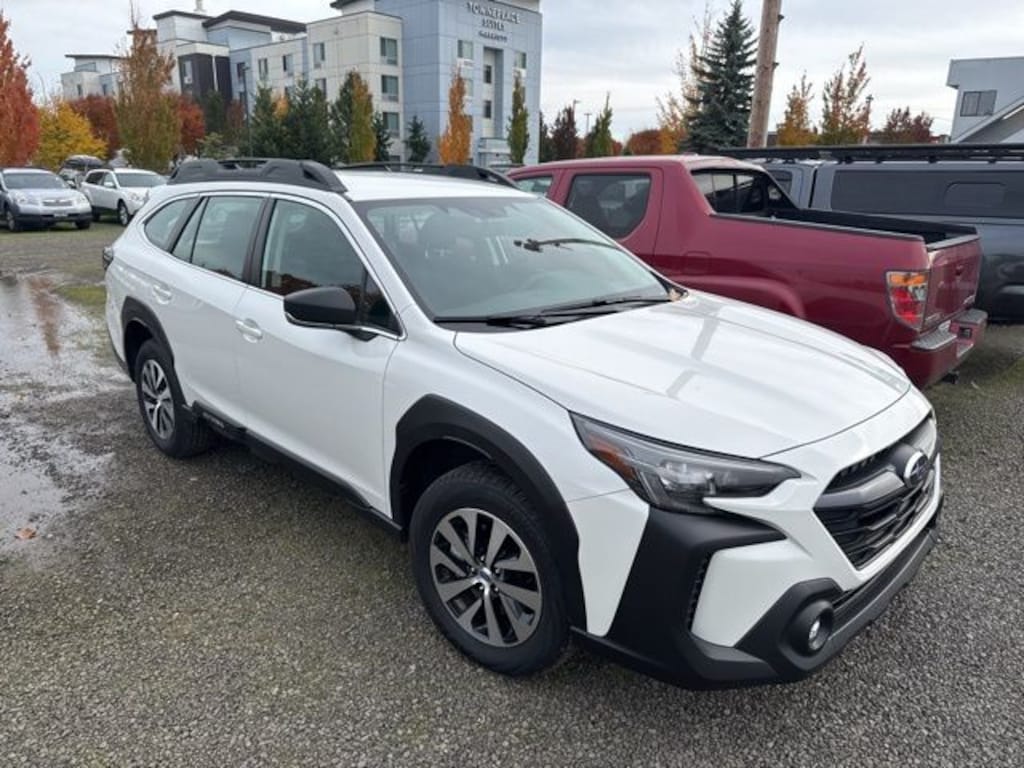 This 2025 Crystal White Pearl Subaru Outback 2.5i AWD is well equipped and includes these features and benefits: Standard Model, 4 Speakers, 4-Wheel Disc Brakes, ABS brakes, Air Conditioning, Alloy wheels, AM/FM radio: SiriusXM, Apple CarPlay & Android Auto, Auto High-beam Headlights, Automatic temperature control, Brake assist, Bumpers: body-color, Cloth Upholstery, Driver door bin, Driver vanity mirror, Dual front impact airbags, Dual front side impact airbags, Electronic Stability Control, Exterior Parking Camera Rear, Four wheel independent suspension, Front anti-roll bar, Front Bucket Seats, Front Center Armrest w/Storage, Front fog lights, Front reading lights, Fully automatic headlights, Illuminated entry, Knee airbag, Low tire pressure warning, Occupant sensing airbag, Outside temperature display, Overhead airbag, Overhead console, Panic alarm, Passenger door bin, Passenger vanity mirror, Power door mirrors, Power steering, Power windows, Radio: Subaru Dual 7.0" Multimedia System, Rear anti-roll bar, Rear seat center armrest, Rear window defroster, Rear window wiper, Remote keyless entry, Roof rack, Security system, Speed control, Speed-sensing steering, Split folding rear seat, Spoiler, Steering wheel mounted audio controls, Tachometer, Telescoping steering wheel, Tilt steering wheel, Traction control, Trip computer, Variably intermittent wipers, and Wheels: 17" x 7J Black Aluminum-Alloy.
