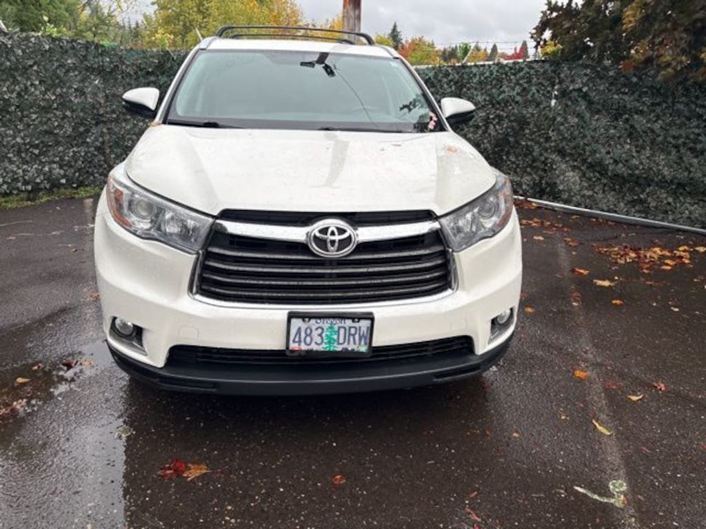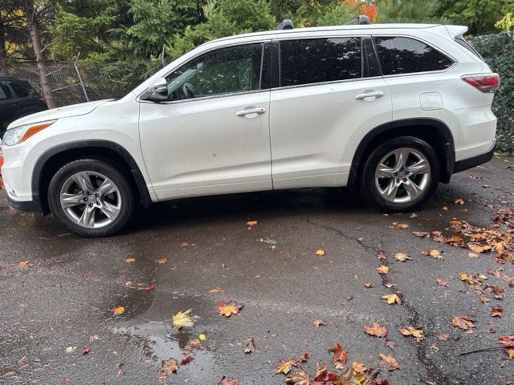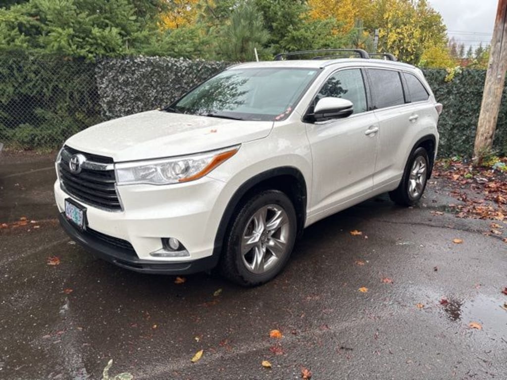 This 2015 White Toyota Highlander Limited AWD is well equipped and includes these features and benefits: AWD, 12 Speakers, 3rd row seats: split-bench, 4-Wheel Disc Brakes, 4.154 Axle Ratio, ABS brakes, Air Conditioning, Alloy wheels, AM/FM radio: SiriusXM, Anti-whiplash front head restraints, Auto-dimming Rear-View mirror, Automatic High Beams, Automatic temperature control, Brake assist, Bumpers: body-color, CD player, Delay-off headlights, Driver door bin, Driver vanity mirror, Dual front impact airbags, Dual front side impact airbags, Electronic Stability Control, Exterior Parking Camera Rear, Four wheel independent suspension, Front anti-roll bar, Front Bucket Seats, Front Center Armrest, Front dual zone A/C, Front fog lights, Front reading lights, Fully automatic headlights, Garage door transmitter, Heated door mirrors, Heated front seats, Heated/Ventilated Front Bucket Seats, Illuminated entry, Knee airbag, Lane Departure Alert, Leather Shift Knob, Low tire pressure warning, Memory seat, Navigation System, Occupant sensing airbag, Outside temperature display, Overhead airbag, Overhead console, Panic alarm, Passenger door bin, Passenger vanity mirror, Perforated Leather Seat Material, Power door mirrors, Power driver seat, Power Liftgate, Power moonroof, Power passenger seat, Power steering, Power windows, Pre-Collision System w/Dynamic Radar Cruise Ctrl, Radio: Entune Premium JBL Audio w/Nav & App Suite, Rear air conditioning, Rear anti-roll bar, Rear Parking Sensors, Rear reading lights, Rear window defroster, Rear window wiper, Reclining 3rd row seat, Remote keyless entry, Roof rack: rails only, Safety Connect, Security system, Speed control, Speed-sensing steering, Split folding rear seat, Spoiler, Steering wheel mounted audio controls, Tachometer, Telescoping steering wheel, Tilt steering wheel, Traction control, Trip computer, Turn signal indicator mirrors, Variably intermittent wipers, Ventilated front seats, and Wheels: 19" 5-Spoke Chromtec Alloy. AWD.