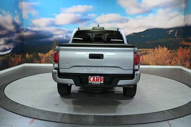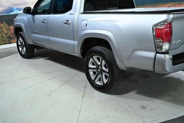 This 2018 Silver Sky Metallic Toyota Tacoma Limited 4WD is well equipped and includes these features and benefits: 4WD, ABS brakes, Active Cruise Control, Alloy wheels, CD player, Compass, Electronic Stability Control, Front dual zone A/C, Illuminated entry, Leather Seat Trim, Low tire pressure warning, Navigation System, Power moonroof, Remote keyless entry, Traction control, 7 Speakers, Air Conditioning, AM/FM radio: SiriusXM, Anti-whiplash front head restraints, Auto High-beam Headlights, Auto-dimming Rear-View mirror, Automatic temperature control, Axle Ratio: 3.91, Bed Mat, Brake assist, Bumpers: body-color, Driver door bin, Driver vanity mirror, Dual front impact airbags, Dual front side impact airbags, Entune App Suite, Exterior Parking Camera Rear, Front anti-roll bar, Front Bucket Seats, Front Center Armrest, Front fog lights, Front reading lights, Front wheel independent suspension, Garage door transmitter: HomeLink, Hard Tri-Fold Tonneau Cover, Knee airbag, Leather Shift Knob, Occupant sensing airbag, Outside temperature display, Overhead airbag, Overhead console, Panic alarm, Passenger door bin, Passenger vanity mirror, Power door mirrors, Power steering, Power windows, Radio: Entune Premium JBL AM/FM/CD w/Nav & App Ste, Rear Parking Sensors, Rear step bumper, Security system, Speed control, Speed-sensing steering, Split folding rear seat, Steering wheel mounted audio controls, Tachometer, Telescoping steering wheel, Tilt steering wheel, Trip computer, Turn signal indicator mirrors, Variably intermittent wipers, and Wheels: 18" x 7.5" Polished Alloy. Heated Front Seats, Power Sliding Rear Window, Heated Side Mirrors, Tow Package, 120V Bed Outlet, Side Window Visors, Front Hood Protector, 4WD, ABS brakes, Active Cruise Control, Alloy wheels, CD player, Compass, Electronic Stability Control, Front dual zone A/C, Illuminated entry, Leather Seat Trim, Low tire pressure warning, Navigation System, Power moonroof, Remote keyless entry, Traction control.