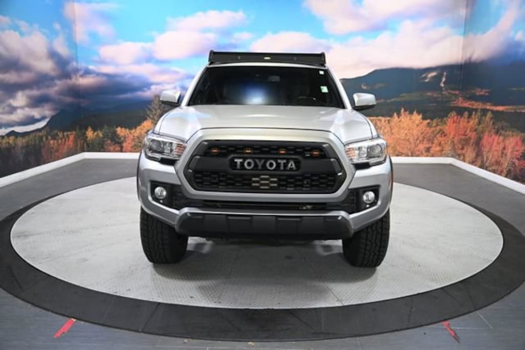 This 2019 Silver Toyota Tacoma SR5 4WD is well equipped and includes these features and benefits: 4WD, 6 Speakers, ABS brakes, Air Conditioning, Alloy wheels, AM/FM radio: SiriusXM, Anti-whiplash front head restraints, Auto High-beam Headlights, Auto-dimming Rear-View mirror, Axle Ratio: 3.91, Brake assist, Bumpers: body-color, CD player, Chrome Rear Bumper, Daytime Running Lamps, Driver door bin, Dual front impact airbags, Dual front side impact airbags, Electronic Stability Control, Entune App Suite, Exterior Parking Camera Rear, Fabric Seat Trim (FC), Front anti-roll bar, Front Bucket Seats, Front Center Armrest, Front Fog Lamps, Front fog lights, Front reading lights, Front wheel independent suspension, Illuminated entry, Knee airbag, Low tire pressure warning, Navigation System, Occupant sensing airbag, Outside temperature display, Overhead airbag, Overhead console, Panic alarm, Passenger door bin, Power door mirrors, Power Sliding Rear Window w/Privacy Glass, Power steering, Power windows, Radio: Entune Premium w/AM/FM/CD/Nav/App Suite, Rear Parking Assist Sonar, Rear step bumper, Remote keyless entry, Remote Keyless Entry System, Speed control, Speed-sensing steering, Split folding rear seat, Steering wheel mounted audio controls, Tachometer, Telescoping steering wheel, Tilt steering wheel, Traction control, Trip computer, Variable Intermittent Wipers, and Variably intermittent wipers.