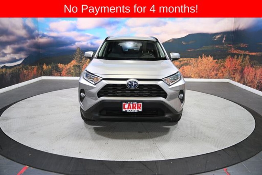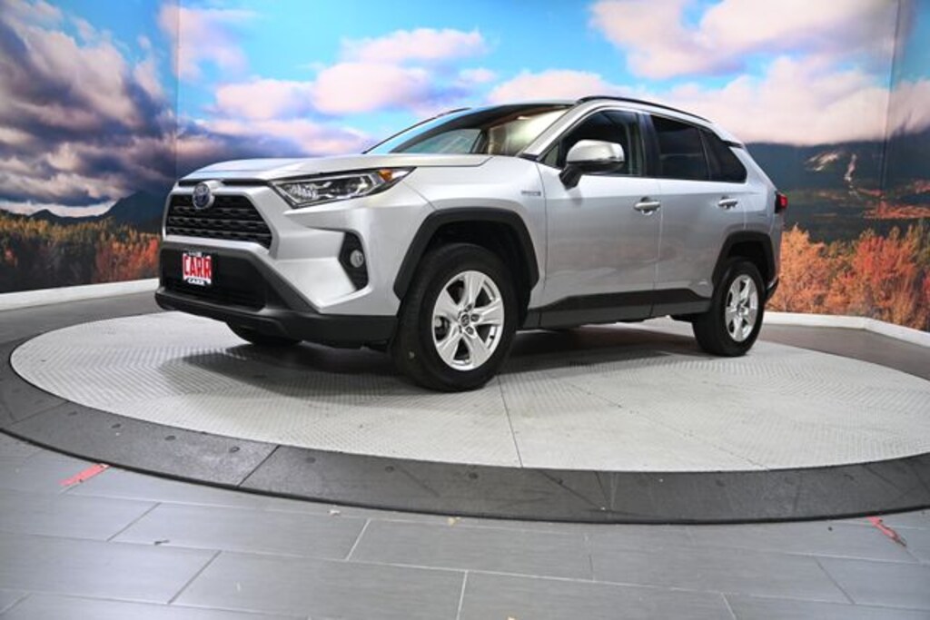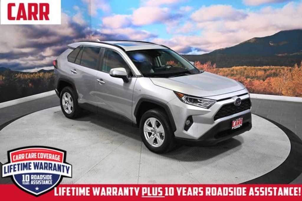 This 2021 Silver Sky Metallic Toyota RAV4 Hybrid XLE AWD is well equipped and includes these features and benefits: Convenience Package (Front Door Smart Key System w/Push Button Start), XLE Grade Weather Package (Front Seat Heating, Heated 3-Spoke Leather Steering Wheel, Rain Sensing Front Wipers, and Wiper Deicer), 2.5L 4-Cylinder, 4-Wheel Disc Brakes, 6 Speakers, ABS brakes, Air Conditioning, Alloy wheels, AM/FM radio: SiriusXM, AM/FM Stereo, Apple CarPlay/Android Auto, Auto High-beam Headlights, Automatic temperature control, Axle Ratio: TBD, Brake assist, Bumpers: body-color, Delay-off headlights, Driver door bin, Driver vanity mirror, Dual front impact airbags, Dual front side impact airbags, Electronic Stability Control, Emergency communication system: Safety Connect with 1-year trial, Exterior Parking Camera Rear, Fabric Seat Trim (FA), Four wheel independent suspension, Front anti-roll bar, Front Bucket Seats, Front Center Armrest, Front dual zone A/C, Front fog lights, Front reading lights, Front Sport Seats, Fully automatic headlights, Heated door mirrors, Illuminated entry, Knee airbag, Lane Departure Warning System, Low tire pressure warning, Occupant sensing airbag, Outside temperature display, Overhead airbag, Overhead console, Panic alarm, Passenger door bin, Passenger vanity mirror, Power door mirrors, Power driver seat, Power steering, Power windows, Radio data system, Rear anti-roll bar, Rear seat center armrest, Rear window defroster, Rear window wiper, Remote keyless entry, Roof rack: rails only, Speed control, Speed-sensing steering, Split folding rear seat, Spoiler, Steering wheel mounted audio controls, Telescoping steering wheel, Tilt steering wheel, Traction control, Trip computer, Turn signal indicator mirrors, Variably intermittent wipers, and Wheels: 17" x 7.0J Silver Aluminum Alloy. Lifetime powertrain warranty, No CARR payments for 4 months, Sign and Drive sales event!, CARR Cares Advantage up to $3100 in ownership savings, Monnroof, 2.5L 4-Cylinder, Convenience Package, Front Door Smart Key System w/Push Button Start, Front Seat Heating, Heated 3-Spoke Leather Steering Wheel, Rain Sensing Front Wipers, Wiper Deicer, XLE Grade Weather Package.