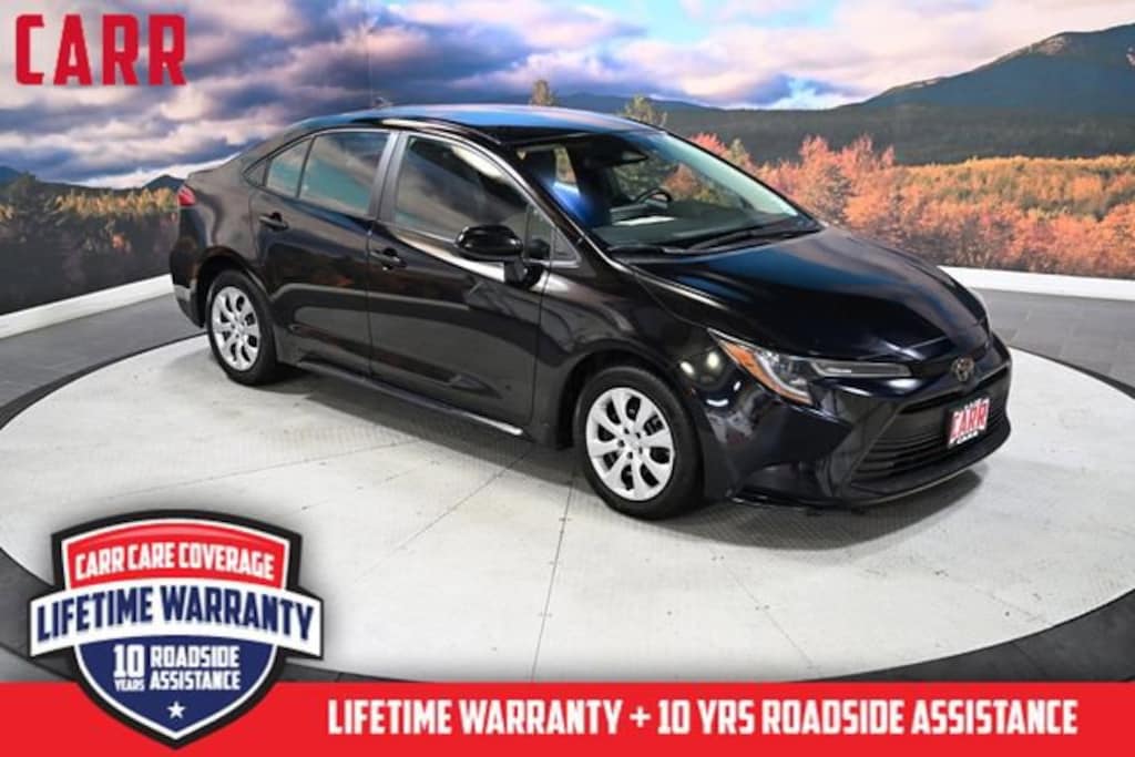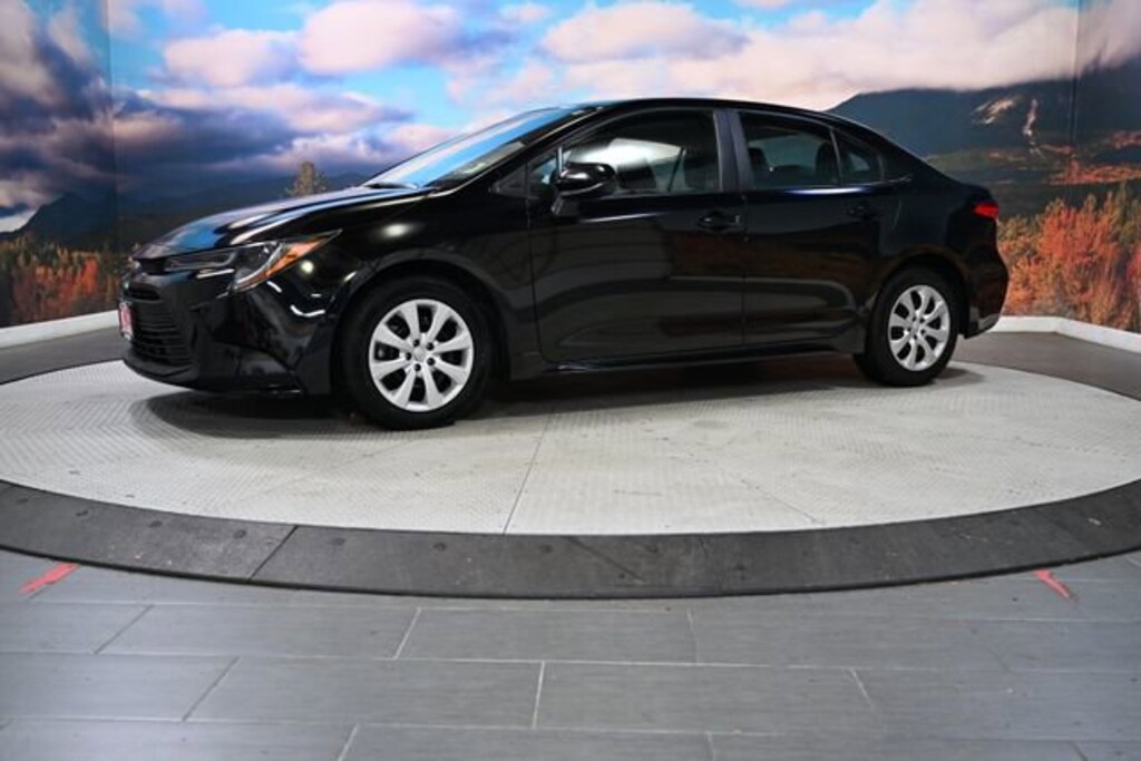 This 2023 Midnight Black Metallic Toyota Corolla LE FWD is well equipped and includes these features and benefits: 4-Wheel Disc Brakes, 6 Speakers, ABS brakes, Air Conditioning, AM/FM radio: SiriusXM, Auto High-beam Headlights, Automatic temperature control, Brake assist, Bumpers: body-color, Color-Keyed Heated Power Outside Mirrors, Delay-off headlights, Driver door bin, Driver vanity mirror, Dual front impact airbags, Dual front side impact airbags, Electronic Stability Control, Emergency communication system: Safety Connect (up to 10-year trial subscription), Exterior Parking Camera Rear, Front anti-roll bar, Front Bucket Seats, Front Center Armrest, Front reading lights, Front wheel independent suspension, Fully automatic headlights, Illuminated entry, Knee airbag, Low tire pressure warning, Occupant sensing airbag, Outside temperature display, Overhead airbag, Panic alarm, Passenger door bin, Passenger vanity mirror, Power door mirrors, Power steering, Power windows, Premium Fabric Seat Trim, Radio data system, Radio: 8 Toyota Audio Multimedia, Rear anti-roll bar, Rear seat center armrest, Rear side impact airbag, Rear window defroster, Remote keyless entry, Speed control, Split folding rear seat, Steering wheel mounted audio controls, Tachometer, Telescoping steering wheel, Tilt steering wheel, Traction control, Trip computer, Variably intermittent wipers, and Wheels: 16 Wide Vent Steel.