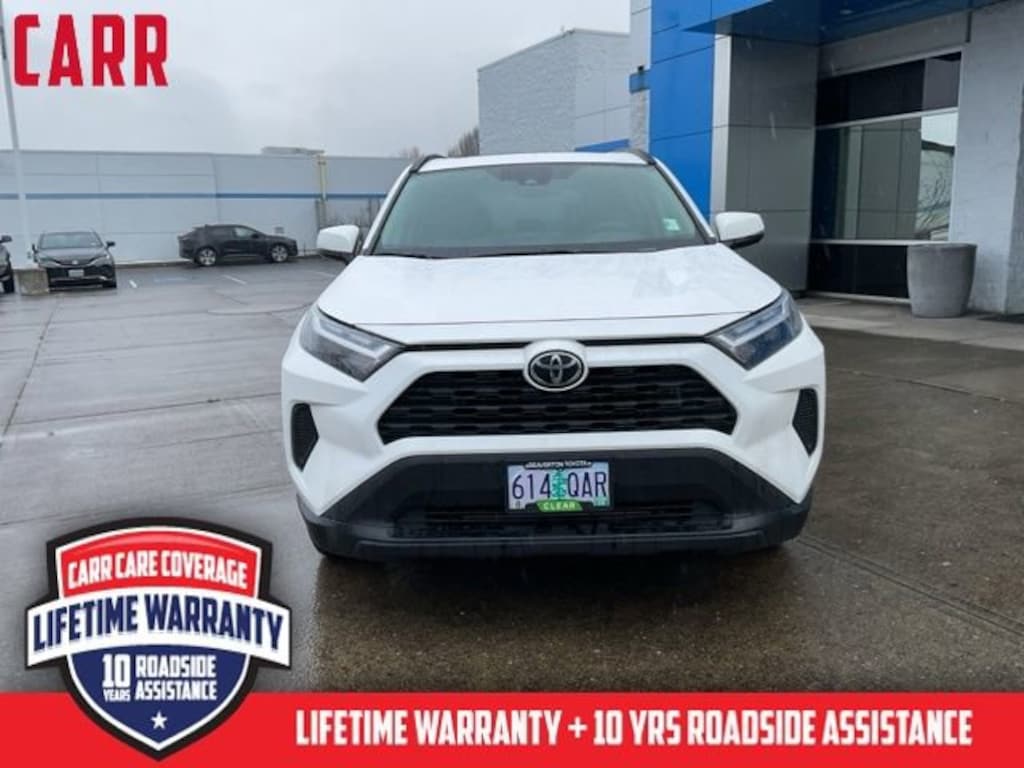 This 2024 White Toyota RAV4 XLE AWD is well equipped and includes these features and benefits: AWD, Black Cloth, 4-Wheel Disc Brakes, 6 Speakers, ABS brakes, Air Conditioning, Alloy wheels, AM/FM radio: SiriusXM, Auto High-beam Headlights, Automatic temperature control, Axle Ratio: 3.177, Brake assist, Bumpers: body-color, Delay-off headlights, Driver door bin, Driver vanity mirror, Dual front impact airbags, Dual front side impact airbags, Electronic Stability Control, Emergency communication system: Safety Connect (10-year trial), Exterior Parking Camera Rear, Fabric Seat Trim, Four wheel independent suspension, Front anti-roll bar, Front Bucket Seats, Front Center Armrest, Front dual zone A/C, Front reading lights, Fully automatic headlights, Heated door mirrors, Illuminated entry, Knee airbag, Low tire pressure warning, Occupant sensing airbag, Outside temperature display, Overhead airbag, Overhead console, Panic alarm, Passenger door bin, Passenger vanity mirror, Power door mirrors, Power driver seat, Power steering, Power windows, Radio data system, Radio: AM/FM/XM Audio System, Rear anti-roll bar, Rear seat center armrest, Rear window defroster, Rear window wiper, Remote keyless entry, Speed control, Speed-sensing steering, Split folding rear seat, Spoiler, Steering wheel mounted audio controls, Tachometer, Telescoping steering wheel, Tilt steering wheel, Traction control, Trip computer, Turn signal indicator mirrors, Variably intermittent wipers, and Wheels: 17 5-Spoke Silver Alloy.