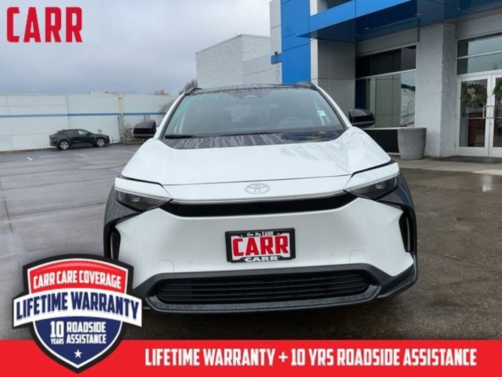 CARFAX One-Owner.White 2024 Toyota bZ4X XLE AWD Single-Speed Automatic Electric Motor114/94 City/Highway MPGCarr Chevrolet is a trusted dealership known for excellent service, a wide range of new and pre-owned vehicles, and competitive pricing, as well as excellent customer service reflected in our 4.5-star Google rating. Committed to our community and building lifelong customer relationships, we include CARR Care coverage, our exclusive lifetime powertrain warranty and 10 years of roadside assistance with most vehicles.This 2024 White Toyota bZ4X XLE AWD is well equipped and includes these features and benefits: 4-Wheel Disc Brakes, 6 Speakers, ABS brakes, Air Conditioning, Alloy wheels, AM/FM radio: SiriusXM, Apple CarPlay/Android Auto, Auto High-beam Headlights, Auto-dimming Rear-View mirror, Automatic temperature control, Axle Ratio TBD, Brake assist, Bumpers: body-color, Delay-off headlights, Driver door bin, Driver vanity mirror, Dual front impact airbags, Dual front side impact airbags, Electronic Stability Control, Emergency communication system: Safety Connect (10-year trial), Exterior Parking Camera Rear, Fabric & SofTex Seat Trim, Four wheel independent suspension, Front anti-roll bar, Front Bucket Seats, Front Center Armrest, Front dual zone A/C, Front reading lights, Front Seats, Fully automatic headlights, Heated door mirrors, Illuminated entry, Knee airbag, Leather steering wheel, Low tire pressure warning, Navigation system: Drive Connect (3 year trial) includes Cloud Navigation with real time traffic and Google POI, Occupant sensing airbag, Outside temperature display, Overhead airbag, Overhead console, Panic alarm, Passenger door bin, Passenger vanity mirror, Power door mirrors, Power driver seat, Power Liftgate, Power steering, Power windows, Radio data system, Radio: 12.3 Toyota Audio Multimedia w/6 Speakers, Rain sensing wipers, Rear anti-roll bar, Rear seat center armrest, Rear window defroster, Remote keyless entry, Security system, Speed control, Speed-sensing steering, Split folding rear seat, Spoiler, Steering wheel mounted audio controls, Telescoping steering wheel, Tilt steering wheel, Traction control, Trip computer, Turn signal indicator mirrors, Variably intermittent wipers, and Wheels: 18 Alloy w/Two-Tone Covers.