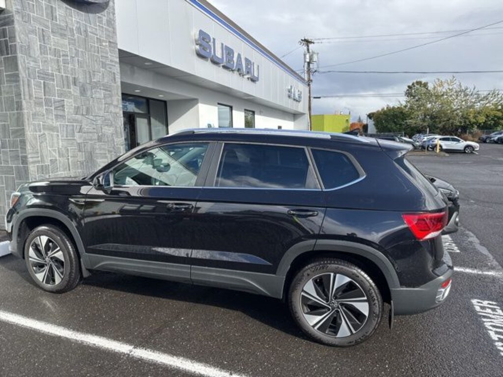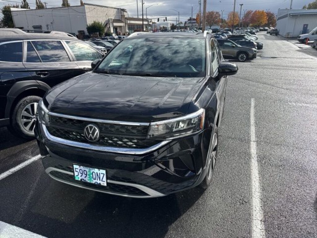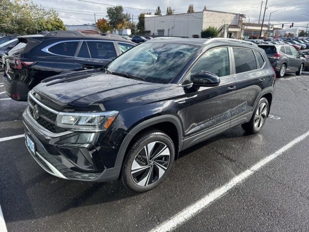 This 2024 Black Volkswagen Taos 1.5T SE AWD is well equipped and includes these features and benefits: 4-Wheel Disc Brakes, 5.20 Axle Ratio, 6 Speakers, ABS brakes, Active Blind Spot Monitor, Air Conditioning, Alloy wheels, AM/FM radio: SiriusXM with 360L, Auto High-beam Headlights, Automatic temperature control, Brake assist, Bumpers: body-color, CloudTex & Cloth Seating Surfaces, Compass, Delay-off headlights, Driver door bin, Driver vanity mirror, Dual front impact airbags, Dual front side impact airbags, Electronic Stability Control, Emergency communication system: VW Car-Net Safe & Secure 5-year, Exterior Parking Camera Rear, Four wheel independent suspension, Front anti-roll bar, Front Bucket Seats, Front Center Armrest, Front dual zone A/C, Front reading lights, Front Strut Rear Multi-Link Suspension, Fully automatic headlights, Heated door mirrors, Heated Front Bucket Seats, Heated front seats, Heated steering wheel, Illuminated entry, Leather Shift Knob, Low tire pressure warning, Occupant sensing airbag, Outside temperature display, Overhead airbag, Overhead console, Panic alarm, Passenger door bin, Passenger vanity mirror, Power door mirrors, Power driver seat, Power steering, Power windows, Radio data system, Radio: MIB3 Composition Media AM/FM/HD, Rain sensing wipers, Rear anti-roll bar, Rear seat center armrest, Rear window defroster, Rear window wiper, Remote keyless entry, Security system, Speed control, Speed-sensing steering, Split folding rear seat, Spoiler, Steering wheel mounted audio controls, Tachometer, Telescoping steering wheel, Tilt steering wheel, Traction control, Trip computer, Variably intermittent wipers, and Wheels: 18" 2-Tone Machined Alloy.